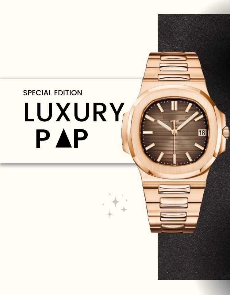 ساعة فاخرة من Pp Naut باللون الذهبي الوردي ومينا باللون البني